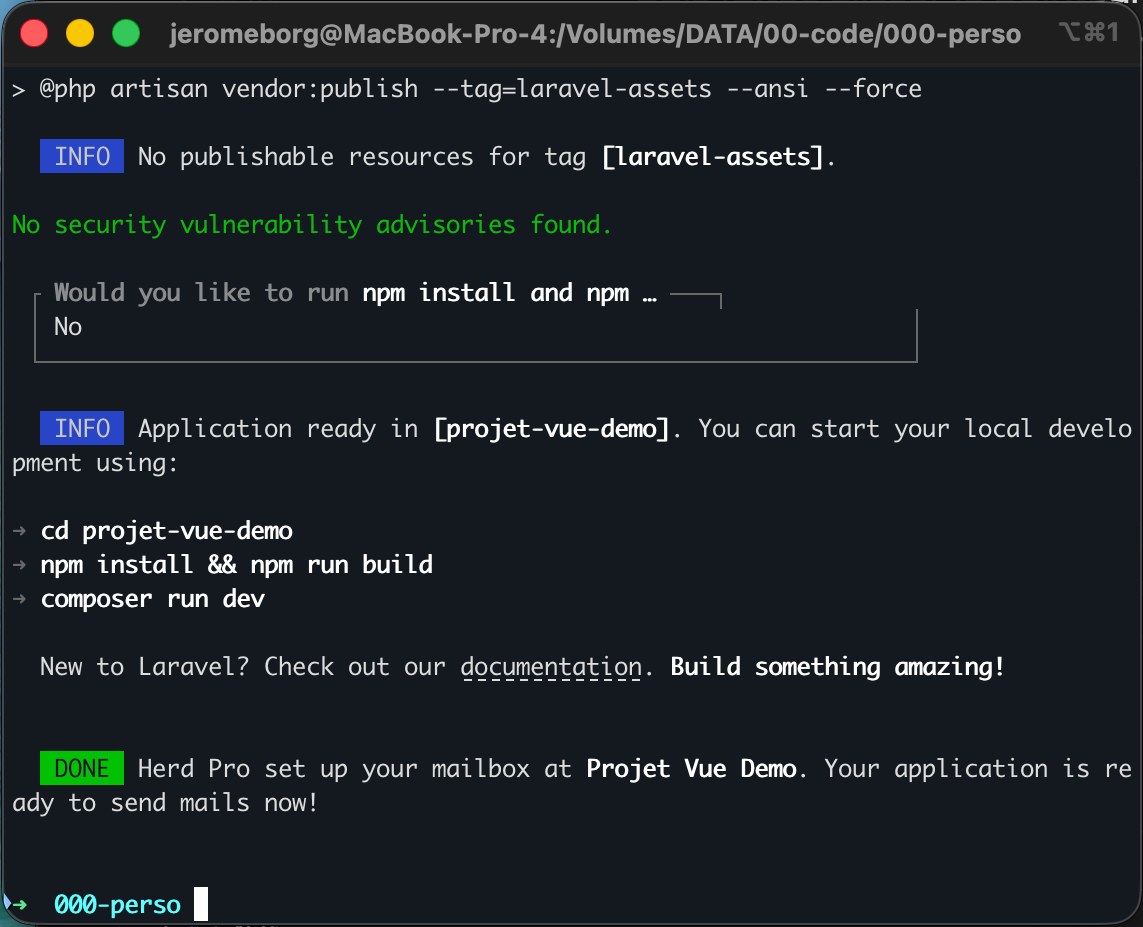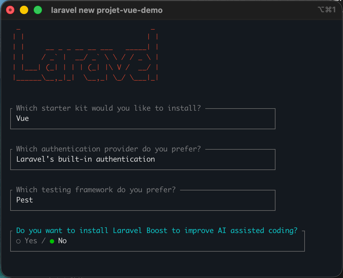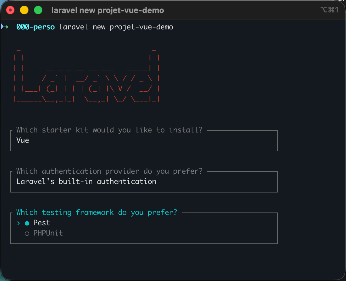 Pour bénéficier du choix dans l'installation, il faut installer l'application laravel